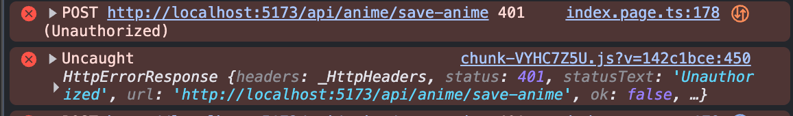 You either add a header to each request or create an interceptor for that, however right now if you target the /api/anime endpoint without the authToken information, you will get the following error message.