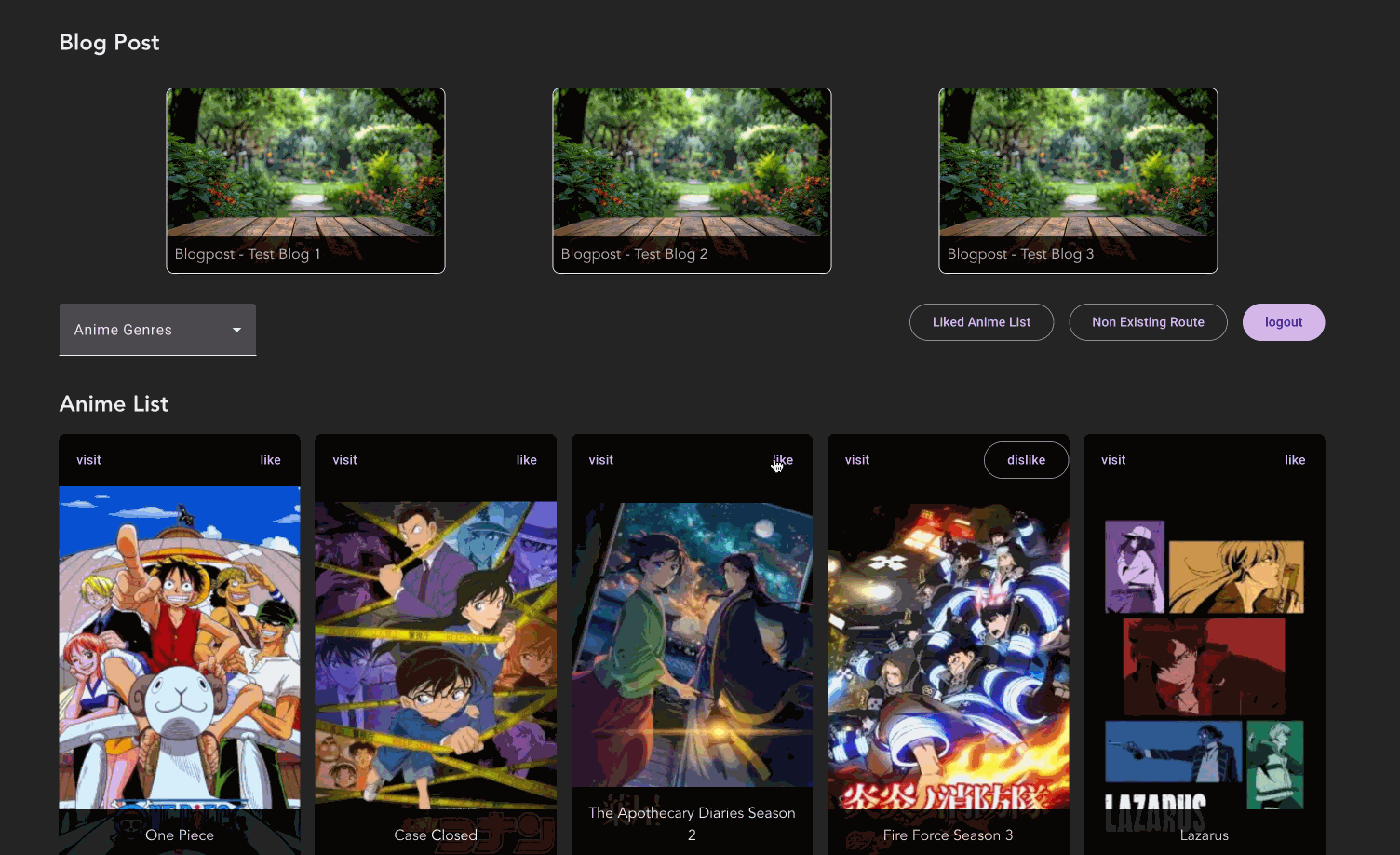 When someone searches and clicks on an anime, the details appear at /details/123, with 123 being the anime’s ID. This page is public and server-side rendered. Logged-in users can also create their own favorites list at /my-list. Since that’s a private page, it’s rendered entirely on the client side.