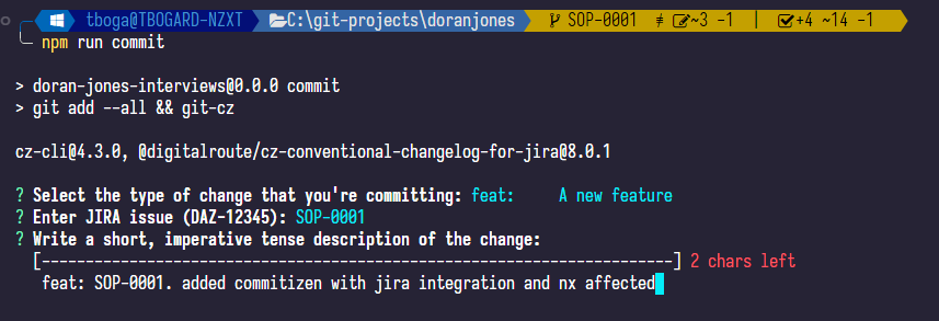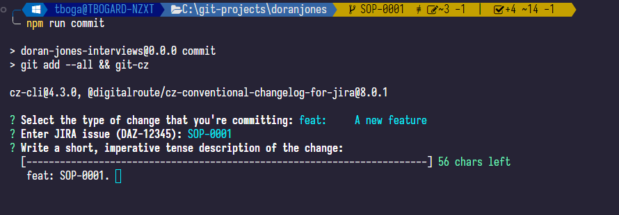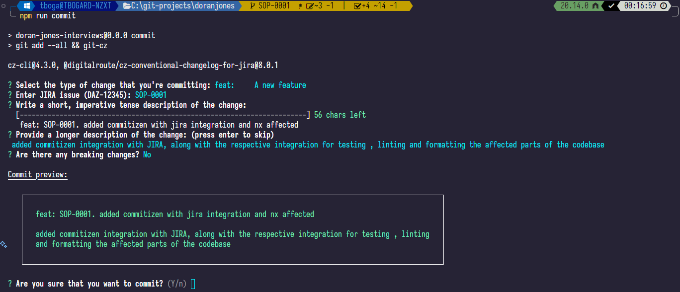 Now, running npm run commit should produce something like this: